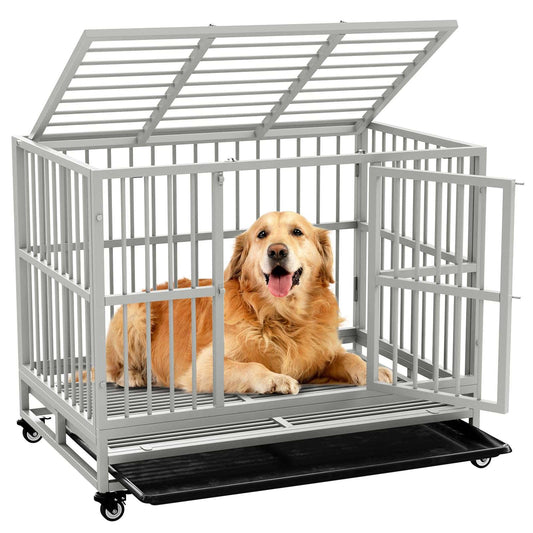 Indestructible Dog Crate with Removable Tray - 37/42/46 Inch Heavy Duty Steel Kennel