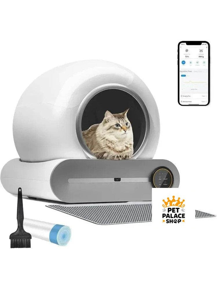 Caja de arena para gatos automática mejorada, caja de arena para gatos autolimpiante, robot de limpieza de gran capacidad de 65 l, control de aplicación/olor